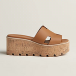 Crafted from vegan leather-effect material, these sandals feature an ultra-light cork platform with a chic “H” cut, offering optimal comfort and a breezy summer look.