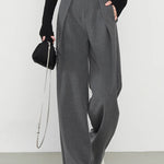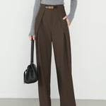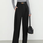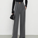 Step into sharp, modern elegance with the Marlo Tailored Wide Leg Trousers, featuring crisp pleats, a flattering high waist, and a sleek gold-tone buckle detail. The flowing wide-leg silhouette creates an effortlessly elongated look with a touch of power dressing.