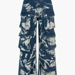 Make a bold statement with the Nova Tie-Dye Cargo Jeans. These jeans feature a striking tie-dye pattern paired with multiple oversized cargo pockets for a trendy, utilitarian look. The relaxed, wide-leg fit creates a laid-back vibe, while the deep indigo and cream swirls add a unique, artistic touch to your wardrobe.