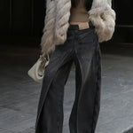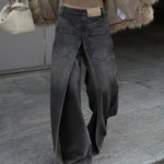 Edgy, daring, and unapologetically bold, the Phantom Split Wide Leg Jeans are designed to make a statement. Crafted from a washed black denim with an exaggerated wide-leg silhouette, these jeans feature dramatic front splits that add movement and attitude to every step. The structured back pockets and high-rise waistline balance the boldness with a flattering, sculpted fit.
