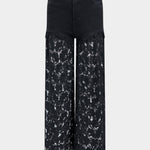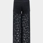 Elevate your denim game with the Valeria Lace-Detail High-Waisted Jeans. These black jeans feature a flattering high-waisted fit with bold lace panels down the legs, offering a unique twist on a classic style. The contrast between the solid denim and delicate lace adds a chic, modern edge to these jeans, making them perfect for both casual and elevated looks.